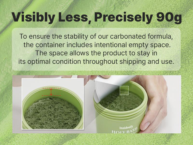 This isn't just another clay mask. Our unique formula contains13% sparkling Holy Basil extract, which reacts with the air to create a luxurious, micro-bubbling foam. These fine bubbles act like tiny, effervescent scrub brushes, diving deep into each pore to loosen and lift away trapped dirt, excess oil, and impurities that cause blackheads and blemishes.